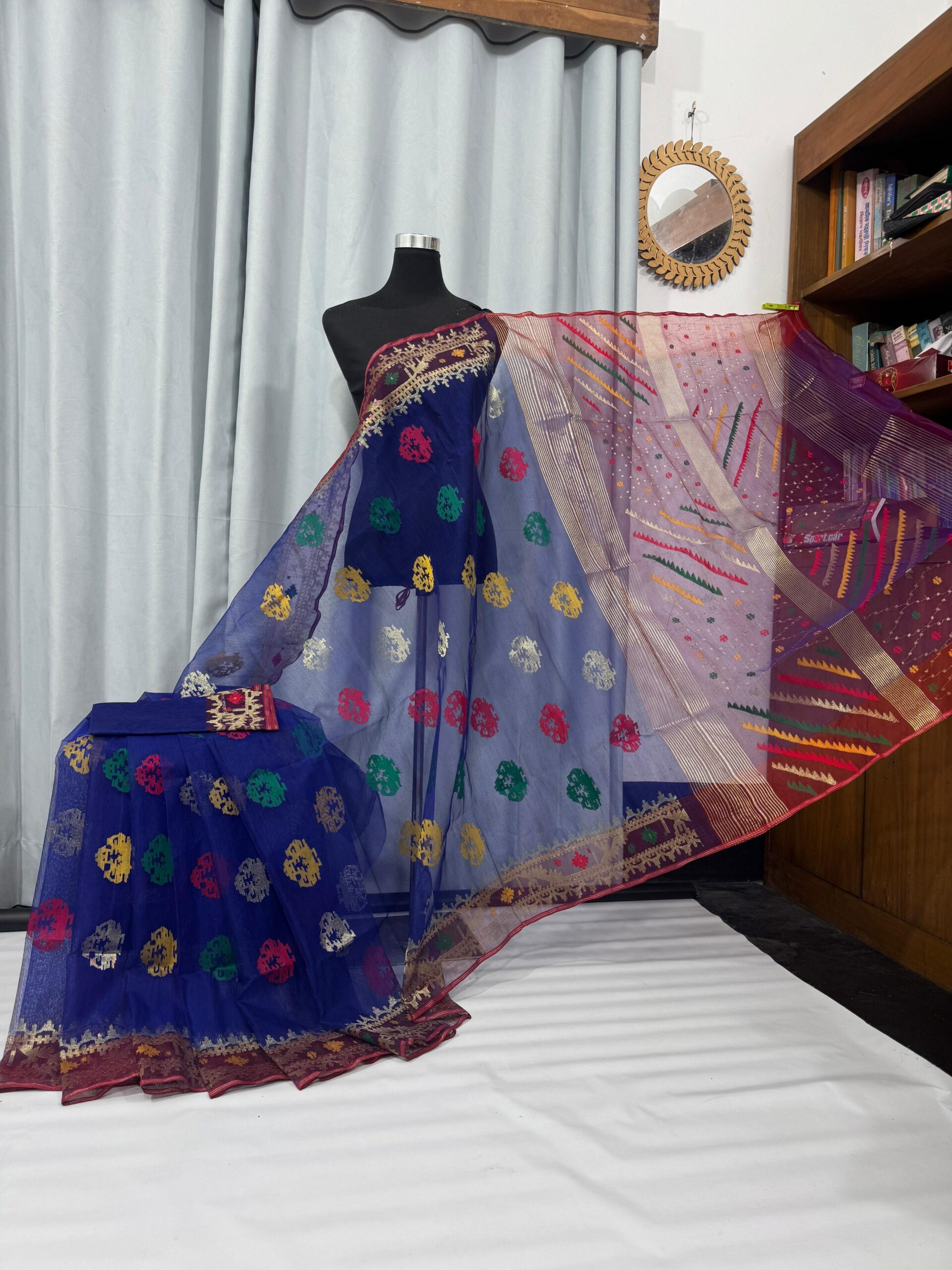 Blue Red Contrasted Jamdani Saree (Ch01)