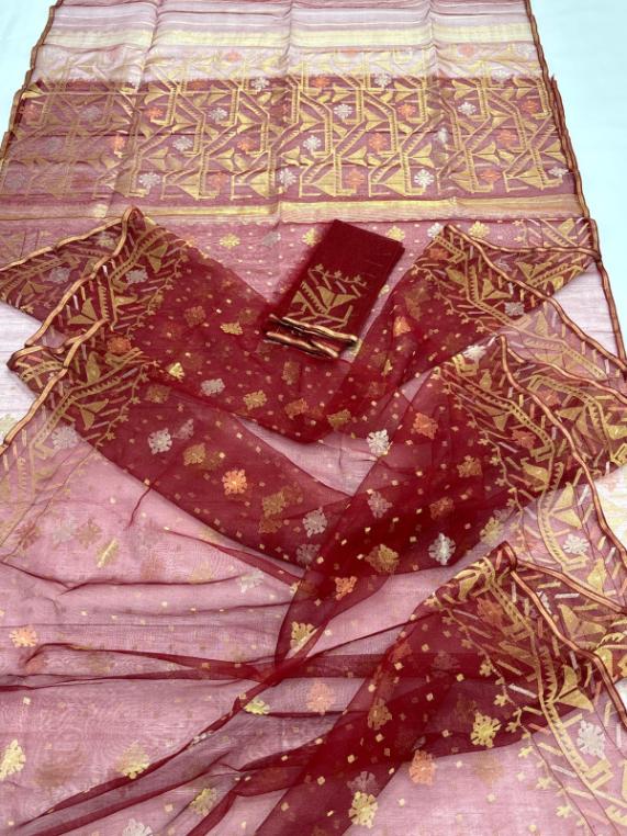 Gorgeous 100 counted Maroon Jamdani Saree