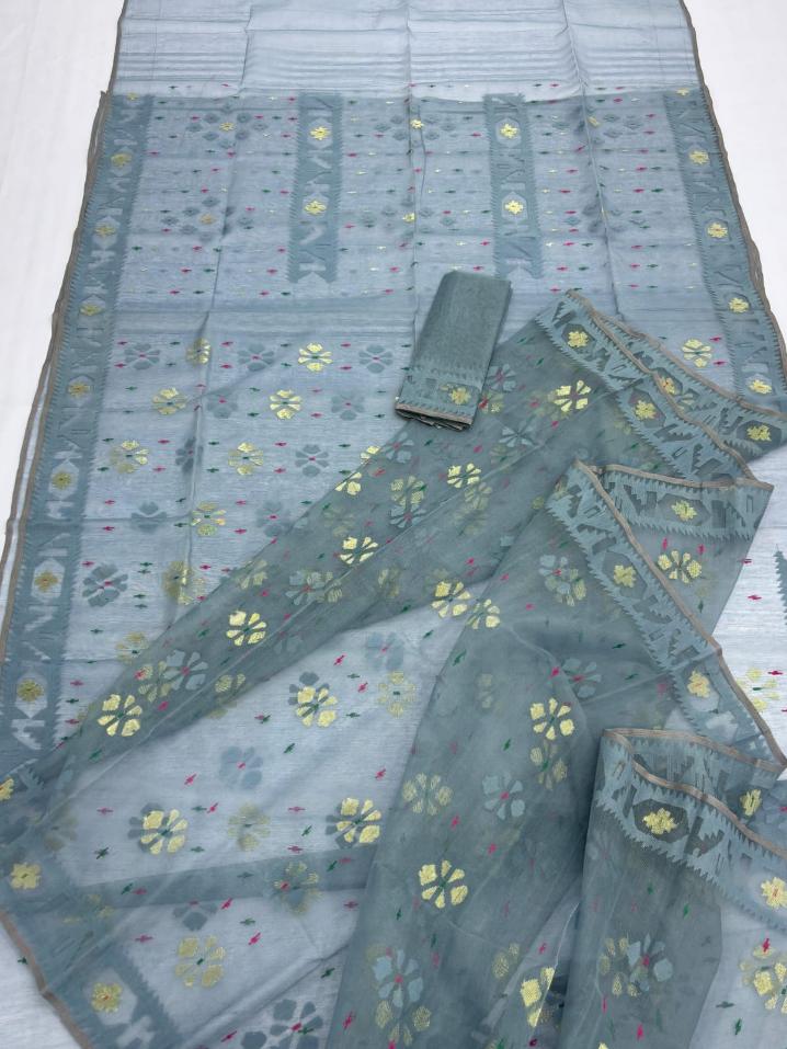 Self Designed Grey Jamdani Saree